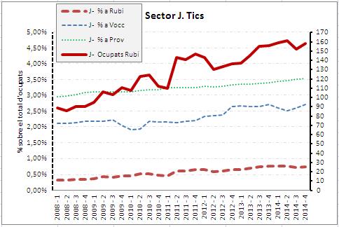- Sectors que creixen significativament: hostaleria, tics, sanitat i serveis socials, educació, oci i cultura.