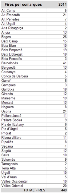Segons les dades del Departament d’Empresa i Ocupació podem observar l’evolució del total de fires.